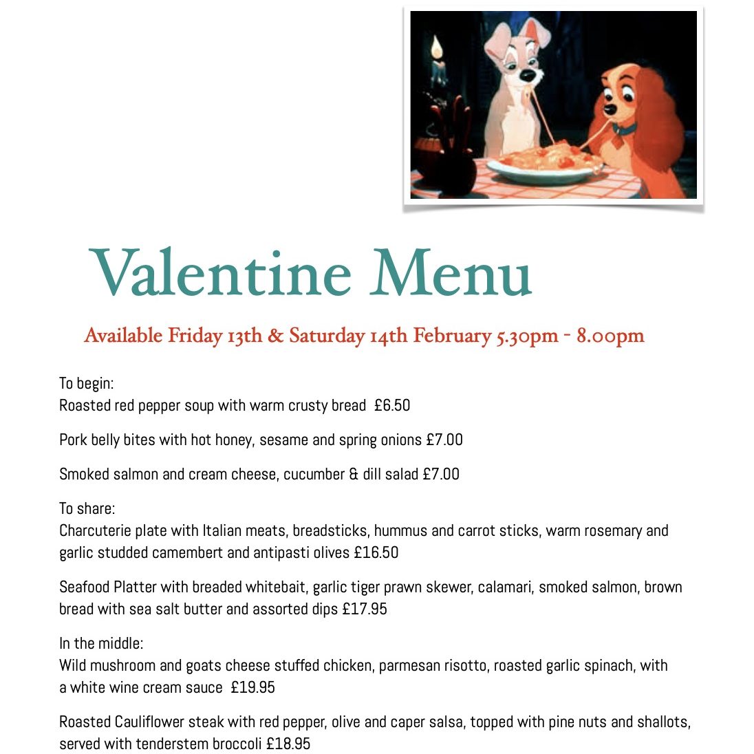 Get ready to shine this Valentine's weekend! 🌟 We're offering a special Valentine menu for Friday evening 13th and Saturday 14th February, but hurry you won't want to miss out. Call or email to book your table.